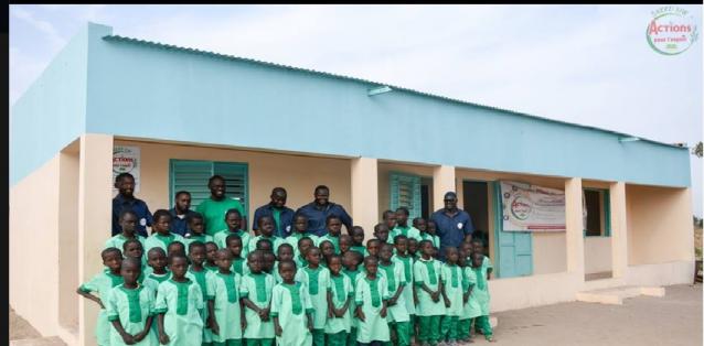 Situé dans la communauté rurale de Ndiaganiao dans le département de Mbour, l’école Dame Niane a été réalisée et inaugurée en 2016 par Sakku Yiw Actions pour l’Espoir à la suite de la mise en place d’un puits dans la dite localité. L’école Dame Niane (EDN) est la concrétisation d’un vieux rêve, l’exaucement de multiples prières,  l’aboutissement de plusieurs requêtes émises  par la population de Ndiaganiao. Ces derniers exprimaient un besoin immense d’attribuer aux tous petits une école franco arabe pouvant assurer aux enfants une bonne éducation. Par la grâce d’Allah, actuellement presque plus de 135 petits anges bénéficient des enseignements et le nombre d’inscrit ne cesse de croitre. Ce qui démontre encore une fois l’intérêt que les villageois portent à l’école.  Malheureusement à l’heure actuelle, l’école Dame Niane traverse des difficultés. Elle  ne dispose d’aucune clôture ce qui occasionne parfois l’irruption d’animaux, perturbant ainsi les cours. A cela s’ajoute le déficit de salles de classe, l’école Dame Niane n’en dispose que deux en dur abritant tous les niveaux (du CI au CM2) ainsi qu’un abri en paille construit grâce à la détermination des populations. Le corps professoral est constitué deux enseignants donnant le meilleur d’eux-mêmes afin de doter aux écoliers un enseignement de qualité. Situé dans une localité enclavée et démunie, l’école peine à trouver de matériel didactique adéquat, de bureau pour les enseignants et de toilettes fonctionnelles afin de procurer aux petits apprenants une excellente formation gage d’un avenir radieux.